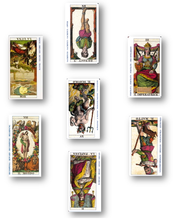 ●こちらから、各回78枚のアルカナから2-4枚を取り上げます。