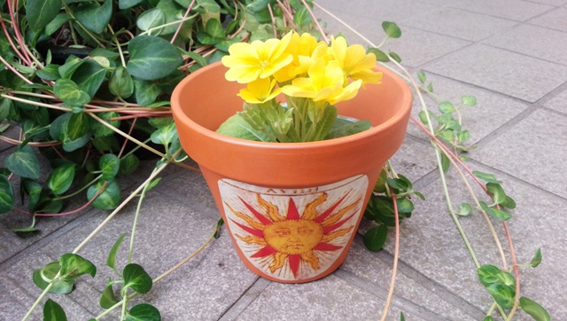 左)タロットアートワークの会にて。マルセイユ版太陽の素焼きの鉢を作って頂きました。素敵!♪